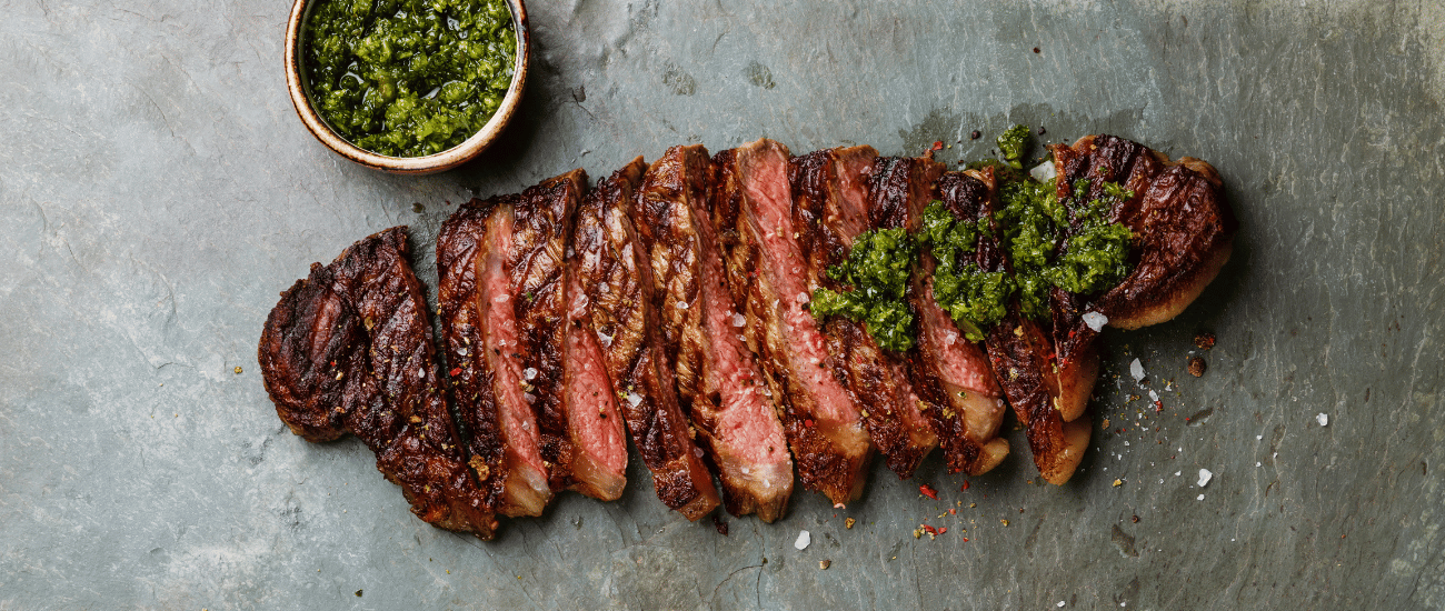 2) Passe o Molho Chimichurri Aromatic por toda a carne e deixe marinar por 30 minutos.