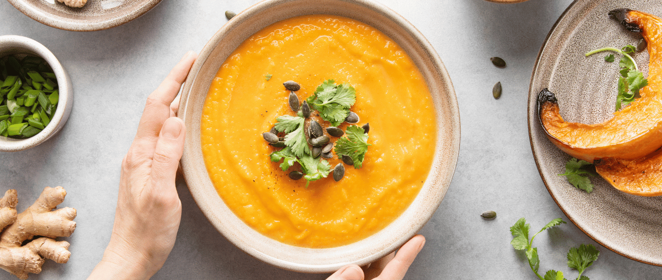 1. Sopa de Abóbora com Caldo de Legumes e Gengibre: